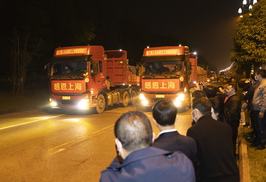 人民網(wǎng)成都3月29日電 (彭茜)這幾日,上海疫情牽動(dòng)人心。3月28日晚,10臺(tái)滿載著120余噸新鮮時(shí)蔬的貨運(yùn)車輛,從四川都江堰集結(jié)出發(fā)開(kāi)往上海,向上海市民帶去都江堰的暖心問(wèn)候和祝福。