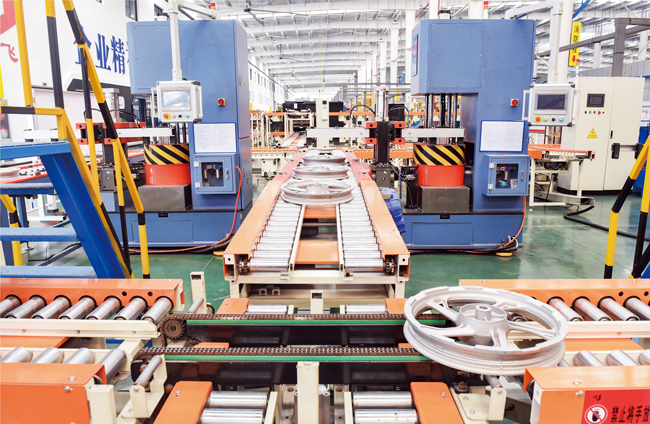 3月30日,在位于金華婺城區(qū)摩輪未來(lái)工廠生產(chǎn)車間里,智能生產(chǎn)線正在平穩(wěn)運(yùn)行,全自動(dòng)完成設(shè)定的輪轂加工工序。該工廠被金華市和婺城區(qū)列為數(shù)字化示范企業(yè)。企業(yè)運(yùn)用5G、視覺(jué)識(shí)別等新一代信息技術(shù),大量應(yīng)用工業(yè)機(jī)器人,實(shí)現(xiàn)柔性化生產(chǎn),建成裝備數(shù)字化、工藝數(shù)字化、運(yùn)營(yíng)數(shù)字化的數(shù)字化工廠。用工人數(shù)比傳統(tǒng)項(xiàng)目減少58%,生產(chǎn)效率提升15%。(陳俊、李建林)