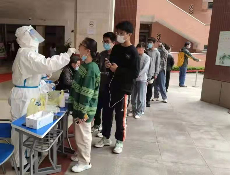 由于學校實行準封閉管理,西藏學生長期住校。面對嚴峻的疫情防控形勢,及時安全的核酸檢測成為保障學生安全的頭等大事。上海市第一人民醫(yī)院得知學校希望醫(yī)務人員能進校園對住校師生員工進行核酸檢測的要求后,克服任務重、人手緊的困難,每周抽調醫(yī)護人員志愿到學校,解決核酸檢測的實際困難,為西藏班學生送去關心和溫暖。(龍鋼)