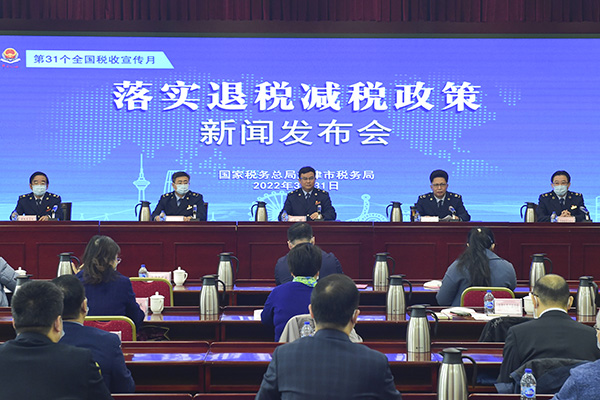 天津市稅務(wù)局黨委委員、副局長、市局退稅減稅辦主任付強通報了天津市稅務(wù)系統(tǒng)落實退稅減稅降費政策的總體部署,天津市稅務(wù)局黨委委員、總經(jīng)濟師、新聞發(fā)言人張連祥主持發(fā)布會,并就組織開展稅收宣傳月系列活動進行介紹,相關(guān)業(yè)務(wù)處室圍繞更好落實新的組合式稅費支持政策、提升稅費服務(wù)質(zhì)效作了具體說明。