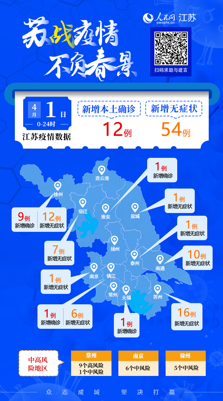 4月1日江蘇新增本土確診病例12例 本土無癥狀感染者54例