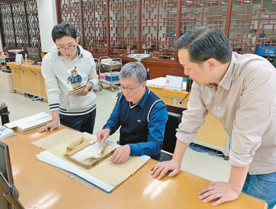既有精湛的修復(fù)技巧,也敢于擁抱新鮮事物,這是年輕修復(fù)師們的優(yōu)勢(shì)?!澳贻p人掌握理論知識(shí),這是老一輩所欠缺的?!惫偶迯?fù)中心業(yè)務(wù)主管陳緒軍坦言,在修復(fù)技巧上老師傅們更有經(jīng)驗(yàn),但年輕人上手更快。從古漢語(yǔ)到繪畫美工,再到傳統(tǒng)古籍裝訂和出版學(xué),古籍修復(fù)專業(yè)需要學(xué)習(xí)的課程和掌握的知識(shí)涉及許多領(lǐng)域?!八麄儠?huì)將很多新式手法和理論運(yùn)用到修復(fù)中,這離不開對(duì)古籍修復(fù)理論化、課程化的探索?!睏顏?lái)京說(shuō)。