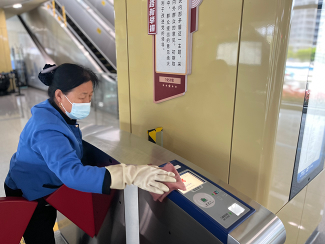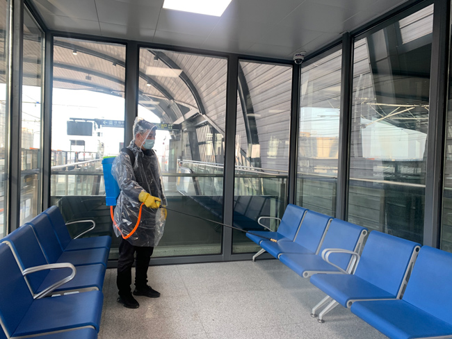 在站臺、站廳等重點區(qū)域,盡管沒有了客流,海寧運營公司根據(jù)車站實際需求維持了每日3至4次的消殺頻次。