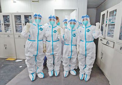 俗話說(shuō)“三分治療,七分護(hù)理”,足見(jiàn)護(hù)理工作的重要。王麗萍所在的這支醫(yī)療隊(duì)伍有150人,其中護(hù)士有119人。每組護(hù)士14人,要服務(wù)600多名患者。盡管大多是無(wú)癥狀感染者,但護(hù)理工作依然不輕松。每天,護(hù)士們?nèi)司?萬(wàn)多步,脫下防護(hù)用具時(shí),都能看到滿身的汗水、紅腫的耳根和留下深深壓痕的鼻翼。“這是一場(chǎng)硬仗,我們做好了思想準(zhǔn)備?!蓖觖惼颊f(shuō)。
