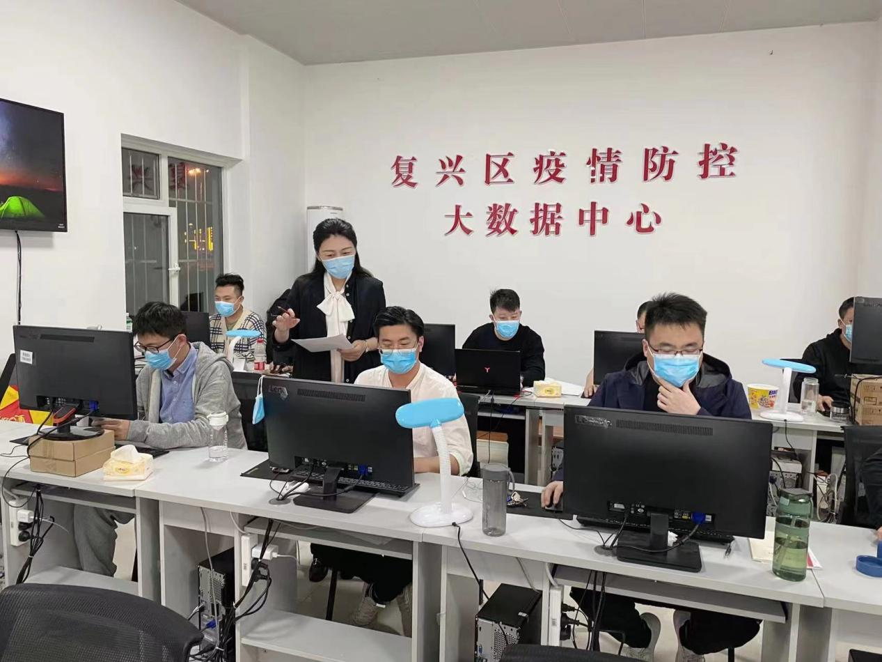 在復(fù)興區(qū)疫情防控大數(shù)據(jù)中心,全面排查組以電腦為“陣地”,24小時不間斷分析研判防疫數(shù)據(jù),為迅速核查涉疫重點人員爭取寶貴時間。