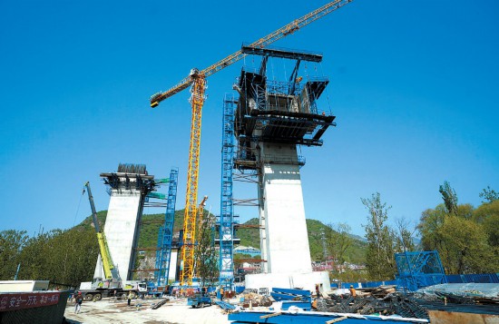 國道109新線高速陳家莊特大橋加緊施工。本報(bào)記者 程功攝