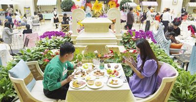 隨著復(fù)工復(fù)產(chǎn)的腳步加快,天津市各大商圈在做好疫情防控的前提下,漸漸恢復(fù)了“煙火氣”。圖為人們?cè)谝患一▓@式餐廳中品嘗精致美食。記者 孫立偉 攝