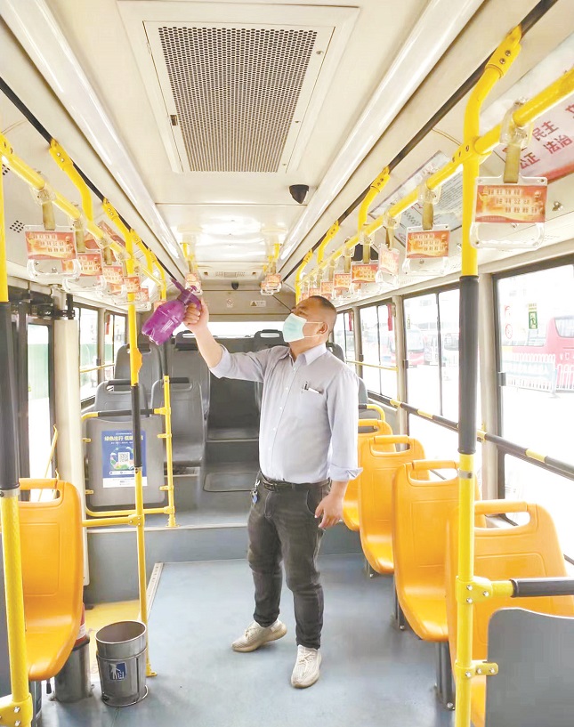 閑不住的柴曉軍總是自己動手,對人群接觸比較密集的扶手、座椅、投票箱、刷卡機等部位進行重點消毒,提前開窗通風,確保給乘客提供干凈、安全的乘車環(huán)境。作為一名共產(chǎn)黨員,他始終發(fā)揮先鋒模范帶頭作用,積極向乘客普及防疫知識,同時提供線路咨詢、熱心幫扶等服務,盡最大努力按照規(guī)范謹慎操作,讓乘客放心。