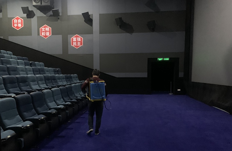 電影院的工作人員正在對影廳進(jìn)行消殺。受訪者供圖