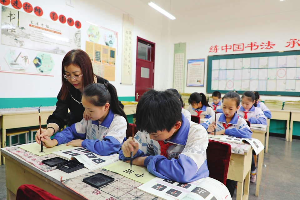 平定縣鎖簧示范小學(xué)堅(jiān)持把“練中國(guó)書法、承傳統(tǒng)文化”的理念貫穿于教書育人全過程,2021年把書法教育納入課后延時(shí)服務(wù)。張春林?jǐn)z