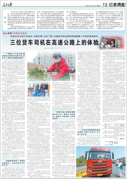 人民日報(bào)頭版+整版!記者實(shí)地探訪山東等地保通保暢工作落實(shí)情況