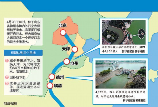 水挽京津冀 運(yùn)河綻新顏:京杭大運(yùn)河百年來(lái)首次全線通水