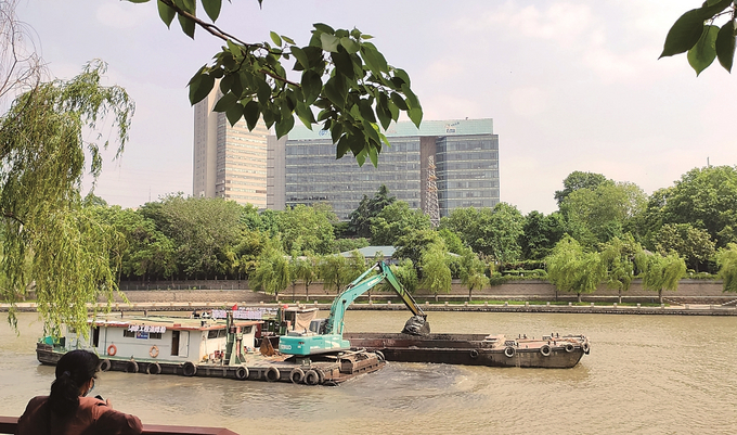 8日,南京秦淮河清淤工作全面推進,計劃對秦淮河中和橋至三汊河口閘段進行全面清淤,總清淤量達100萬立方米。今年底,將為市民呈現(xiàn)水清岸綠的秦淮風光。本報記者 樂濤 攝