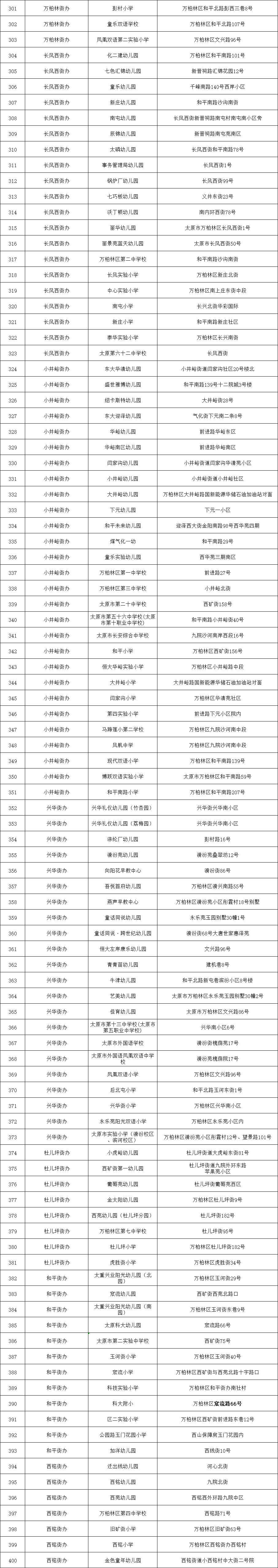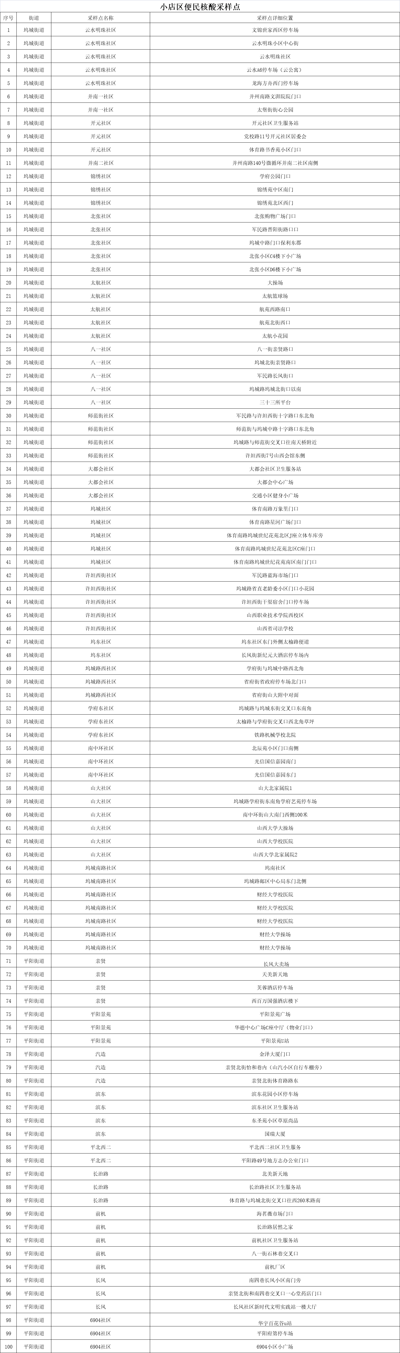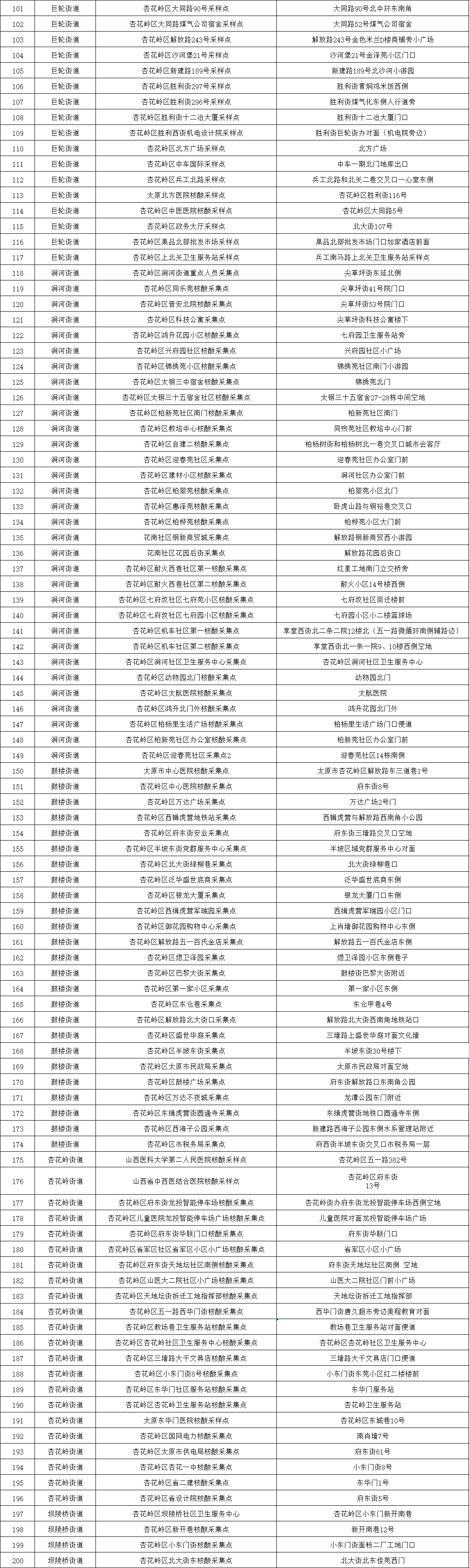 附:太原六城區(qū)便民核酸采樣點(diǎn)位