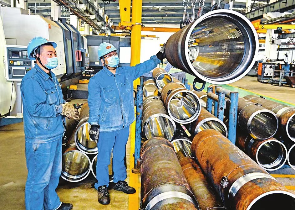5月16日,在晉能控股裝備制造集團華越華益公司機加工工段,員工根據(jù)系統(tǒng)反饋將剛剛加工完的缸體進行轉(zhuǎn)運。近年來,晉能控股裝備制造集團華越華益公司大力推進數(shù)字化工廠建設,推動現(xiàn)代制造與信息技術深度融合,公司70余臺數(shù)控機床均實現(xiàn)了數(shù)字聯(lián)網(wǎng),通過“MES制造過程管理”系統(tǒng),將5個工段132道生產(chǎn)工序全部納入了“一張網(wǎng)”管理,使生產(chǎn)真正“實時反應”起來,極大地帶動了工作效率提升。(記者劉通攝)