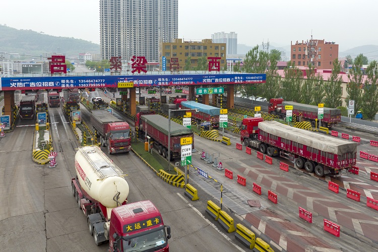 呂梁西高速口,貨運車輛正在快速通行。劉亮亮 攝
