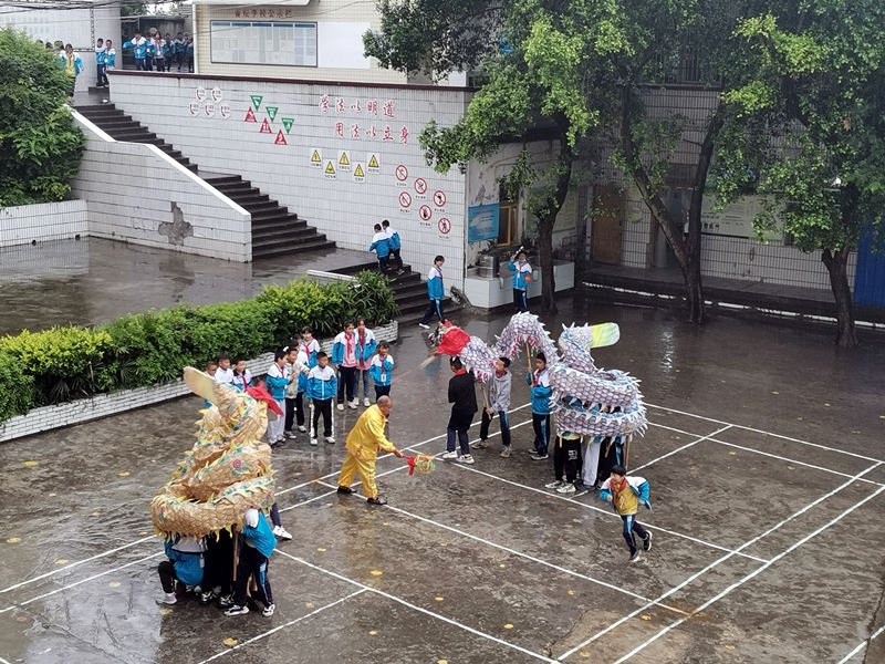 “我先是向師生傳授舞龍技藝基本動作,然后再選擇50個娃娃組建學(xué)生舞龍隊(duì),再系統(tǒng)培訓(xùn)舞龍?!绷_德書說,從基本動作開始,再到套路訓(xùn)練、樂器訓(xùn)練,到了期末,基本就能進(jìn)行一個完整的表演了。