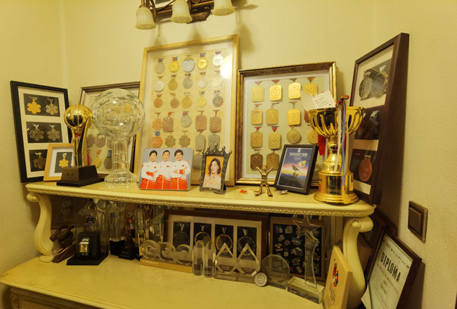 徐夢桃家中擺滿了她的獎牌。胡婧怡攝
