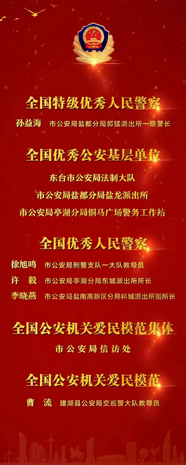 鹽城公安一批集體和個人獲全國公安系統表彰