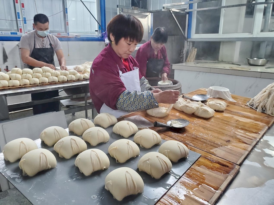望母泉豆制品廠生產(chǎn)車間,工人正在制作白干。龔旭東供圖