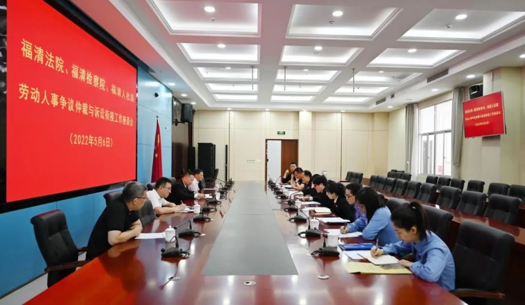 為更好推進裁審銜接,經溝通,2022年5月6日,福清市法院、福清市檢察院、福清市人社局共同召開勞動人事爭議仲裁與訴訟銜接工作座談會。