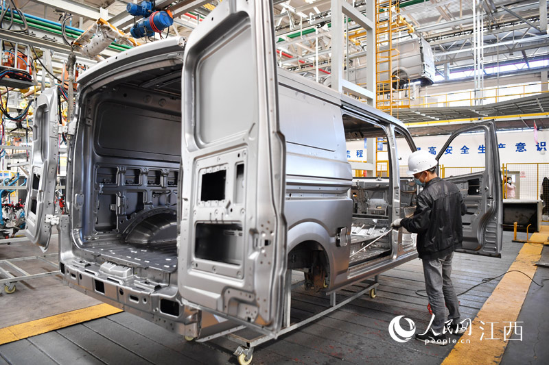在江西省贛州市經(jīng)開(kāi)區(qū)的一家汽車生產(chǎn)企業(yè)的車間里,工人們正在作業(yè)。人民網(wǎng) 時(shí)雨攝