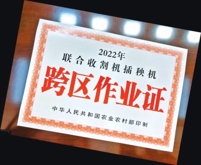 5萬(wàn)張農(nóng)機(jī)跨區(qū)作業(yè)證、400萬(wàn)套農(nóng)機(jī)設(shè)備