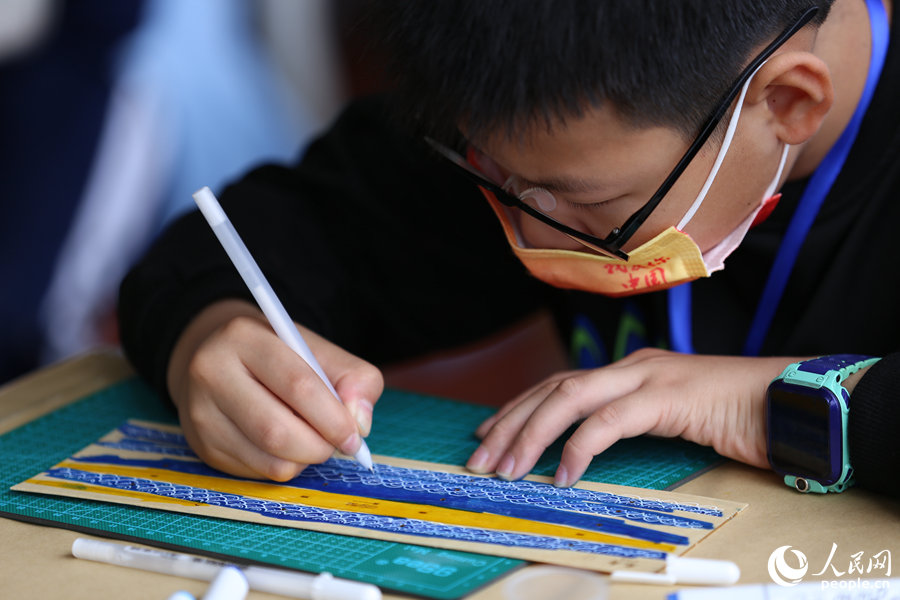 活動(dòng)現(xiàn)場(chǎng),選手們列隊(duì)進(jìn)入各自賽場(chǎng),用畫(huà)筆在龍舟模型素材板上畫(huà)出各式圖案,再將一個(gè)個(gè)零部件手工拼接,組裝成一條條獨(dú)具特色的“小龍舟”,船體或是金銀鱗甲,或是祥云波浪,色彩斑斕,風(fēng)格不一。