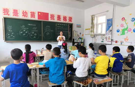 楊曉帥正在給孩子們上語(yǔ)文課。 河北省人社廳供圖