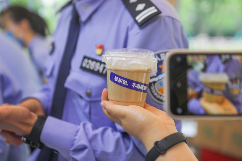 同時,隨著“坐在警務(wù)站里喝咖啡”話題持續(xù)火爆,公安民警將踐行“三能”要求與參與創(chuàng)意市集相結(jié)合,創(chuàng)新推出了“蜀黍請你喝咖啡 反詐知識帶回家”快閃活動,以更有活力、更接地氣、更潮流入時的方式,讓年輕群眾在學(xué)習(xí)知識的過程中,還能品嘗到香醇可口的咖啡。
