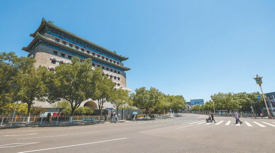 昨天,曾位于正陽門箭樓下的前門旅游集散中心完成騰退,路面和人行道恢復(fù)正常功能。 本報(bào)記者 鄧偉攝
