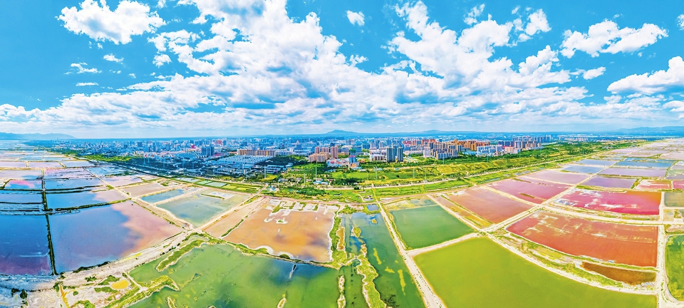 6月28日,運(yùn)城市中心城區(qū),藍(lán)天白云與七彩鹽湖交相輝映,美不勝收。近年來,運(yùn)城市緊緊圍繞綠色發(fā)展理念,加強(qiáng)鹽湖生態(tài)資源的保護(hù)和修復(fù),將鹽湖打造成生物多樣的生態(tài)空間、風(fēng)光旖旎的旅游目的地、愜意舒心的居民休憩地。(陳方斌攝)