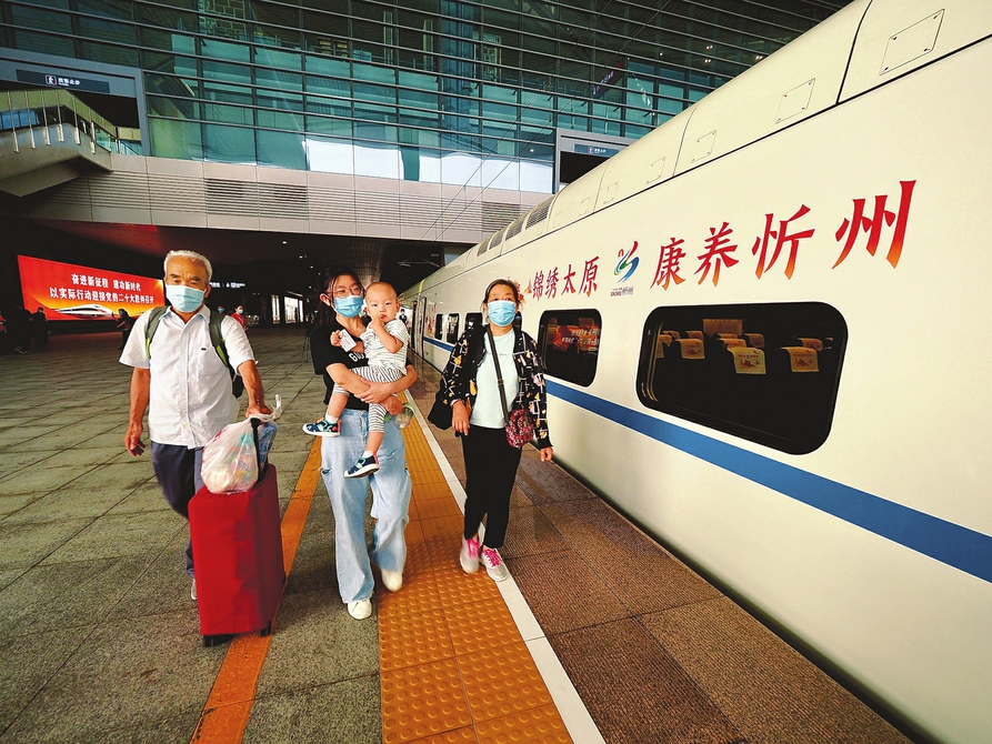 服務(wù)于“太忻號”的乘務(wù)員深感責任在肩。“我們利用車身貼、海報等對車體進行立體式包裝——雙塔寺、五臺山大白塔、忻州古城……動車組似一道絢麗的彩虹把兩地的山山水水串聯(lián)起來,實現(xiàn)‘錦繡太原、康養(yǎng)忻州’旅游元素的共享。我們還為旅客提供忻州美食,做好服務(wù)員、宣傳員、導(dǎo)游員,讓旅客了解忻州文化、山西文化,打響‘太忻號’品牌,助推旅游業(yè)發(fā)展?!薄疤锰枴绷熊囬L王芳如是說。
