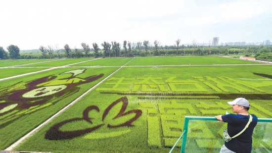 本報訊(記者 孫云柯)用大地田園作畫紙,用五彩水稻作畫筆。近日,通州區(qū)臺湖鎮(zhèn)稻小蟹藝術(shù)農(nóng)場內(nèi)的五彩稻田進入最佳觀賞期,一幅水田阡陌、青翠宜人的生態(tài)田園畫卷徐徐展開。