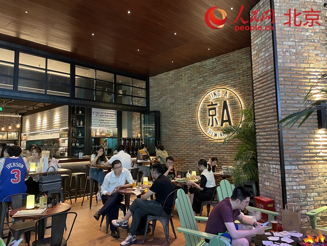 除了火鍋店,一家名為“京A Taproom”的美式精釀啤酒餐吧也熱鬧十足。美式工業(yè)風(fēng)的裝潢極具格調(diào),炸雞配啤酒的組合也頗有人氣?!斑@里的氛圍我很喜歡,小吃和啤酒也很對(duì)我的胃口,來這里能夠忘掉那些煩惱和壓力。”李女士在工作了一天之后,邀約了朋友一起來這家餐吧放松心情。