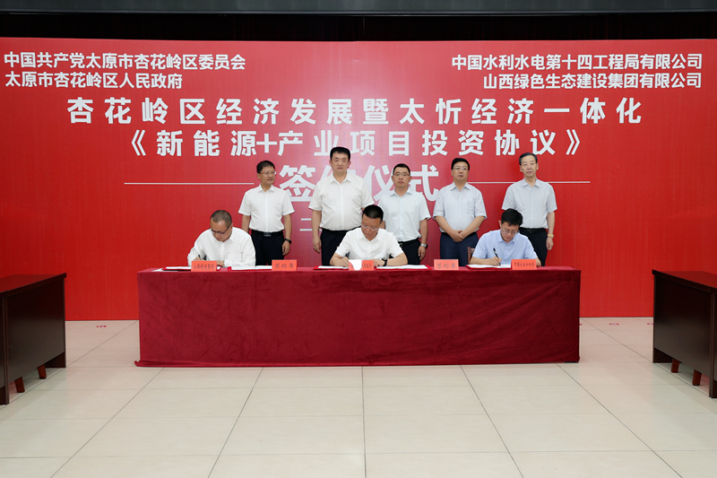 人民網(wǎng)太原7月13日電(記者 雷昊)今日,太原市杏花嶺區(qū)經(jīng)濟(jì)發(fā)展暨太忻經(jīng)濟(jì)一體化“新能源+產(chǎn)業(yè)項(xiàng)目投資協(xié)議”簽約儀式舉行。中國(guó)水利水電第十四工程局有限公司、山西綠色生態(tài)建設(shè)集團(tuán)有限公司與杏花嶺區(qū)人民政府簽訂《新能源+產(chǎn)業(yè)項(xiàng)目合作投資協(xié)議》,在傳統(tǒng)支柱行業(yè)轉(zhuǎn)型升級(jí)、基礎(chǔ)設(shè)施改造、綠色產(chǎn)業(yè)、鄉(xiāng)村振興、文旅產(chǎn)業(yè)、生態(tài)治理等領(lǐng)域開(kāi)展深度合作,預(yù)計(jì)總投資80億元。