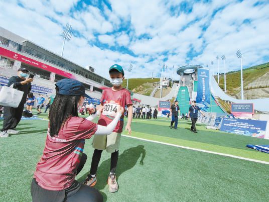 “媽媽,我找到了!”6歲女童小安妮跟著媽媽一路奔跑到達位于“冰玉環(huán)”上的指定地點,完成打卡,高興地與媽媽拍手。昨天舉辦的冬奧場館定向賽吸引了幾百名戶外運動愛好者來到張家口崇禮,他們在國家跳臺滑雪中心、張家口奧林匹克頒獎廣場、張家口冬奧村、太子城考古遺址公園等多個冬奧會場館間穿行,感受這里的冬奧記憶。