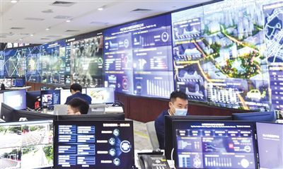 走進(jìn)這座智慧城市的“中樞”──生態(tài)城“城市大腦”運(yùn)營(yíng)中心,只見(jiàn)以深藍(lán)為主色調(diào)的超大液晶屏鋪滿(mǎn)整面墻,科技感拉滿(mǎn)。屏幕上的數(shù)據(jù)和信息背后,是建設(shè)、環(huán)境、醫(yī)療、應(yīng)急等10多個(gè)領(lǐng)域的實(shí)時(shí)運(yùn)行情況,涉及30余個(gè)系統(tǒng)、400余項(xiàng)指標(biāo)。工作人員目不轉(zhuǎn)睛地監(jiān)測(cè)、記錄、反饋,在做到心中有“數(shù)”的同時(shí),也將城市管理運(yùn)營(yíng)模式從“被動(dòng)處置”轉(zhuǎn)為“主動(dòng)干預(yù)”。