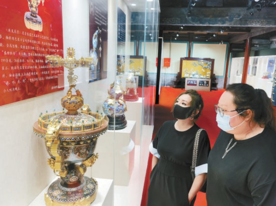 昨天,“匠心筑夢(mèng)共創(chuàng)未來(lái)——燕京八絕非遺創(chuàng)新精品展暨中國(guó)工藝美術(shù)大師張同祿景泰藍(lán)傳承作品特展”在千年古剎承恩寺北京燕京八絕博物館開(kāi)幕。觀眾品鑒了《座龍花薰》《富貴恒通》《花漫春和》《智趣》等二十余件題材豐富廣泛、釉質(zhì)細(xì)膩華美、造型多姿多彩、立意莊重深遠(yuǎn)的景泰藍(lán)工藝精品。 本報(bào)記者 吳鏑攝