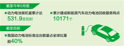 回收利用體系初步建立。截至今年6月底,我國已累計(jì)建成10171個(gè)新能源汽車動(dòng)力電池回收服務(wù)網(wǎng)點(diǎn),基本實(shí)現(xiàn)退役電池就近回收。