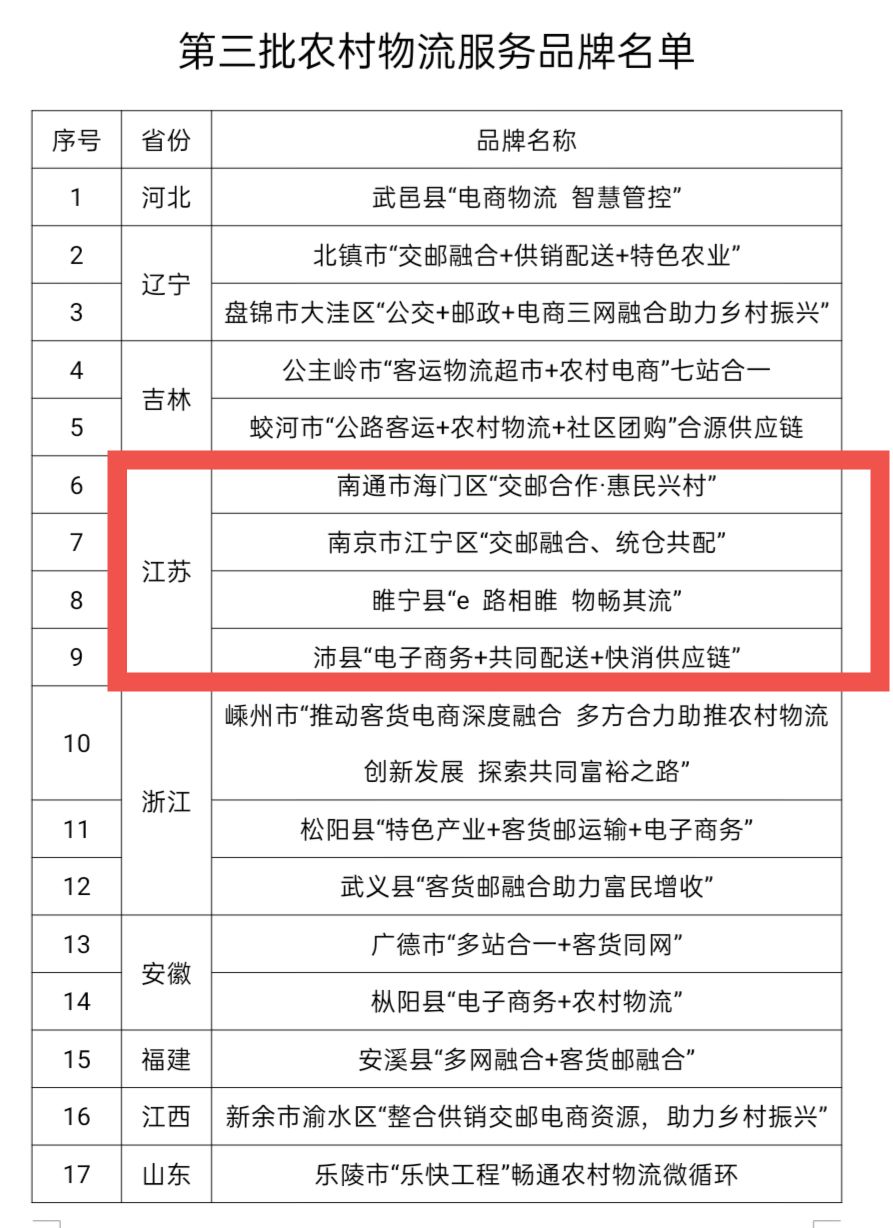 江蘇4項(xiàng)目入選全國第三批農(nóng)村物流服務(wù)品牌
