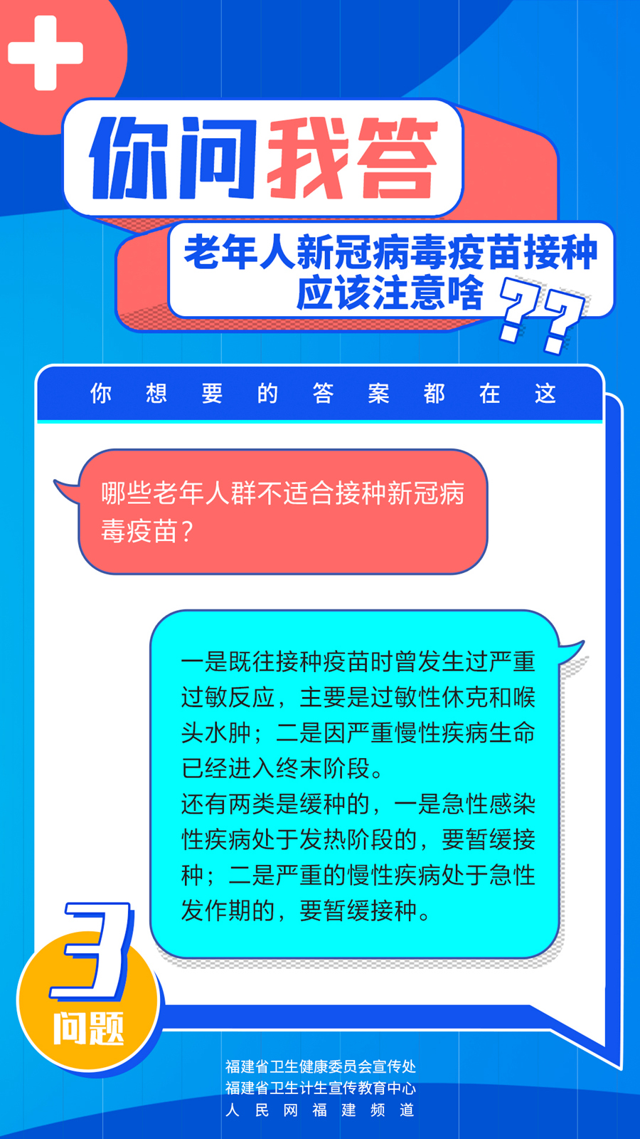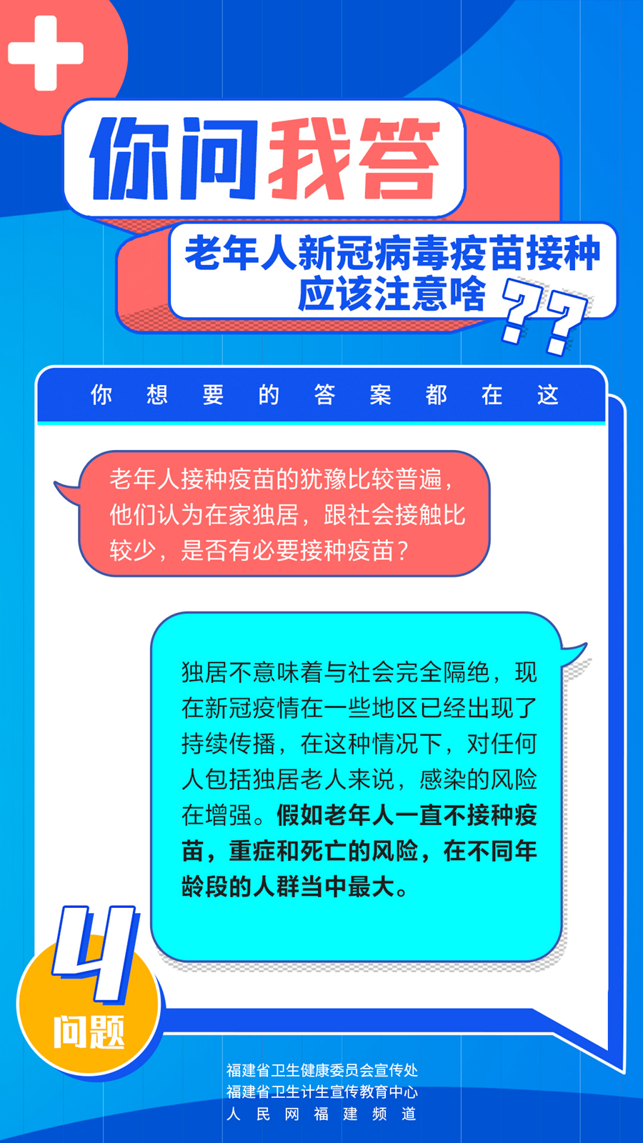 老年人接種疫苗是否安全?會(huì)有更強(qiáng)烈的不良反應(yīng)嗎?哪些老年人群不適合接種新冠病毒疫苗?你問我答,快問快答!老年人新冠病毒疫苗接種究竟應(yīng)該注意啥?