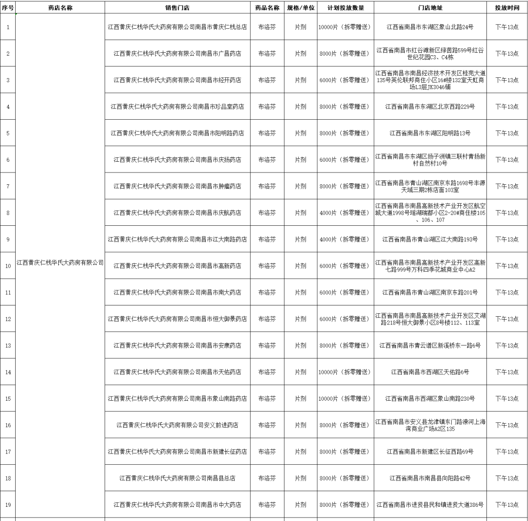 據(jù)悉,本期投放共計拆零贈送20.6萬片(粒),銷售1200盒。消費者可根據(jù)自身需求,前往就近的門店購買或領(lǐng)取。本次公布藥品信息將于12月22日投放,請關(guān)注具體投放時間(見詳下表)。