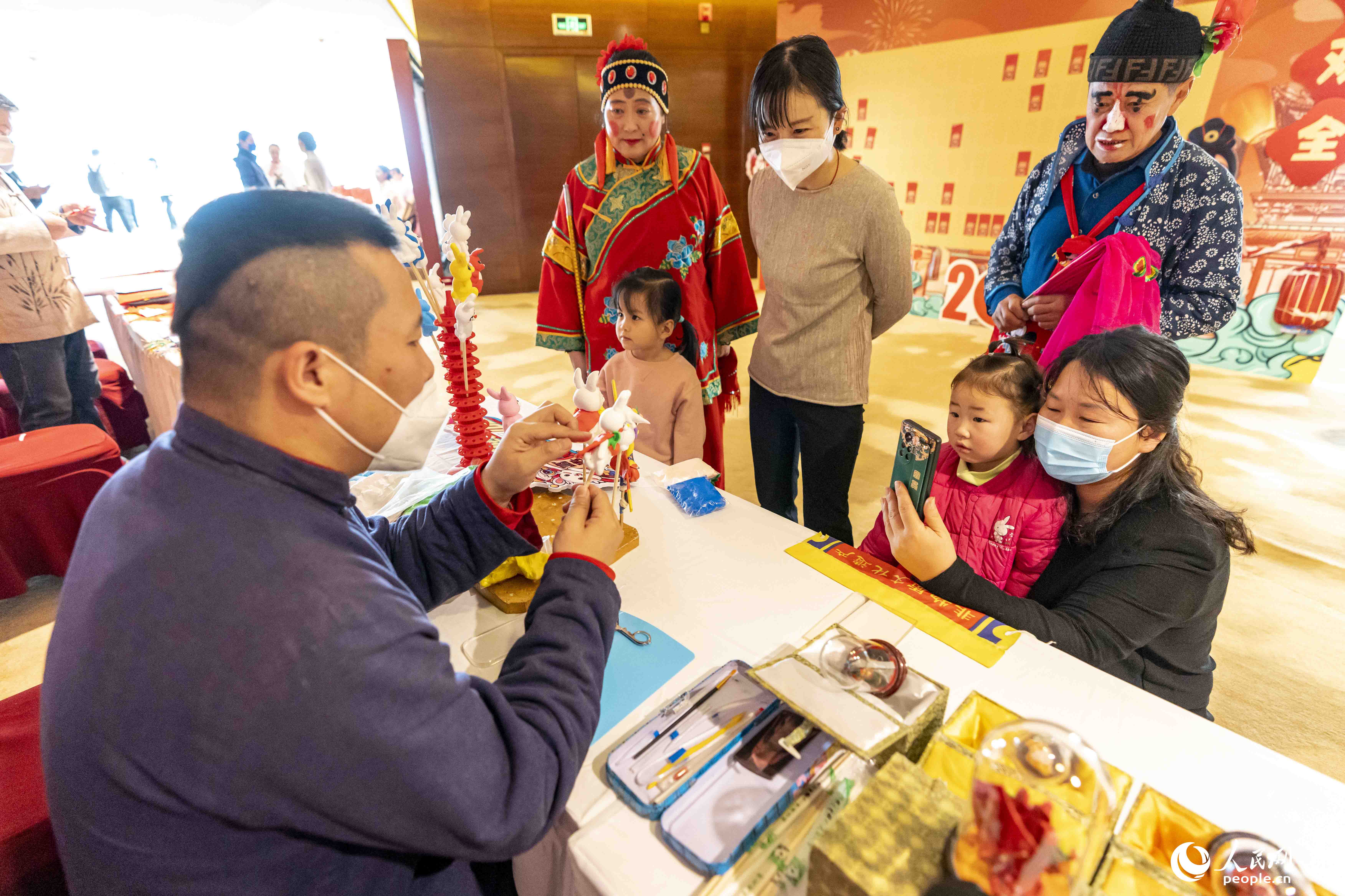 在推介活動(dòng)現(xiàn)場(chǎng),精心布置了“新春市集”互動(dòng)體驗(yàn)區(qū)、年俗非遺互動(dòng)體驗(yàn)區(qū)、年俗節(jié)目快閃區(qū)等頗具山西特色文化的體驗(yàn)區(qū)域,營造了喜慶、熱烈的春節(jié)氛圍。剪紙、木板年畫、糖畫、面塑等項(xiàng)目,讓現(xiàn)場(chǎng)嘉賓沉浸式體驗(yàn)山西非遺的獨(dú)特魅力。在山西年俗表演快閃區(qū)域,舞獅表演、旱船等山西社火表演,讓濃濃的年味迎面撲來?;顒?dòng)中,飽含山西大院文化符號(hào)、中國結(jié)等元素,寓意團(tuán)圓美滿的山西文旅兔年IP形象“晉小美”也首次亮相。