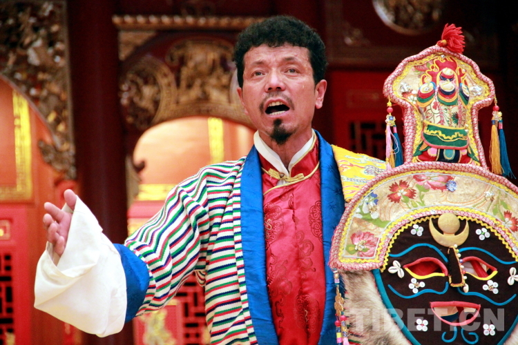 拉薩市城關(guān)區(qū)娘熱民間藝術(shù)團成員、西藏自治區(qū)級覺木隆藏戲傳承人洛桑次仁是目前為數(shù)不多的掌握了全部“八大藏戲”唱腔、表演的戲師。圖為洛桑次仁表演藏戲唱腔《朗薩雯波》之貢桑德慶唱腔攝影:劉莉
