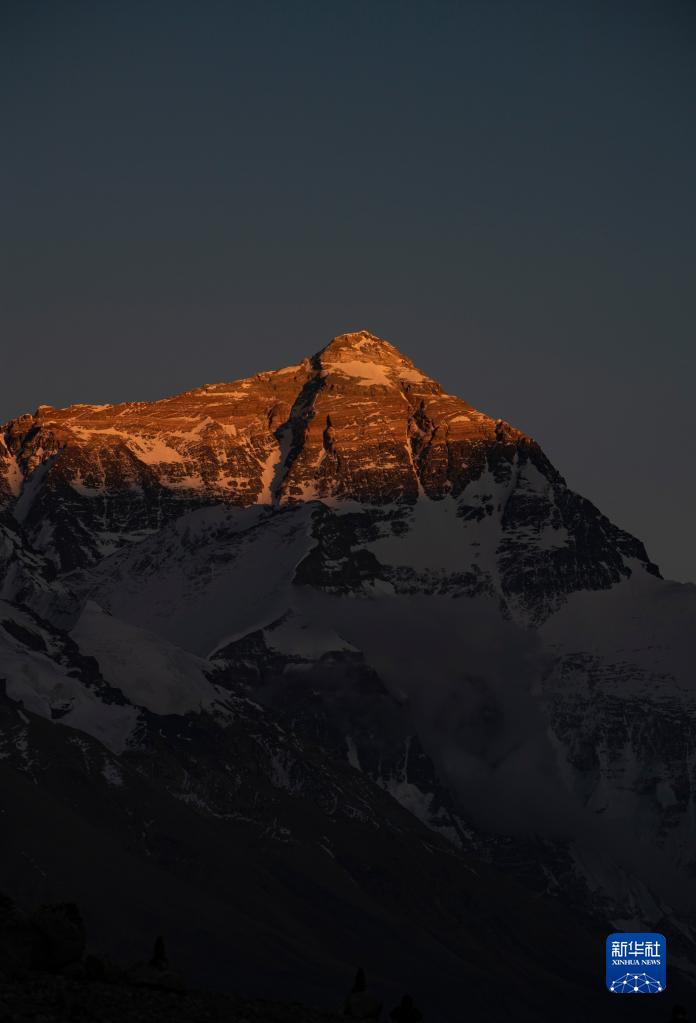 6月4日拍攝的太陽完全落山之后的珠峰。新華社記者 費茂華 攝
