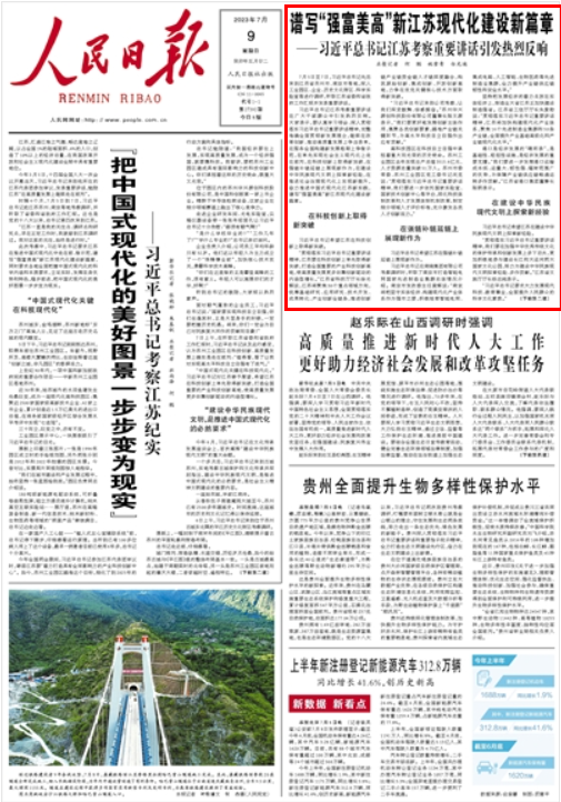 人民日?qǐng)?bào)丨譜寫“強(qiáng)富美高”新江蘇現(xiàn)代化建設(shè)新篇章——習(xí)近平總書記江蘇考察重要講話引發(fā)熱烈反響