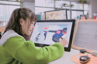 丁姣卻無暇享受首戰(zhàn)告捷的喜悅。她緊跟著賽場上運動健兒的步伐,在她的工作室里苦思冥想地構(gòu)思著、創(chuàng)作著。不能看到運動員的面部表情,就更多地去觀察他們的動作,尤其是獨有的、精彩的動作,然后準確、生動、傳神地定格、記錄下來,再配上可愛的動漫要素,把他們在比賽中最閃光的瞬間生動、形象地呈現(xiàn)出來。