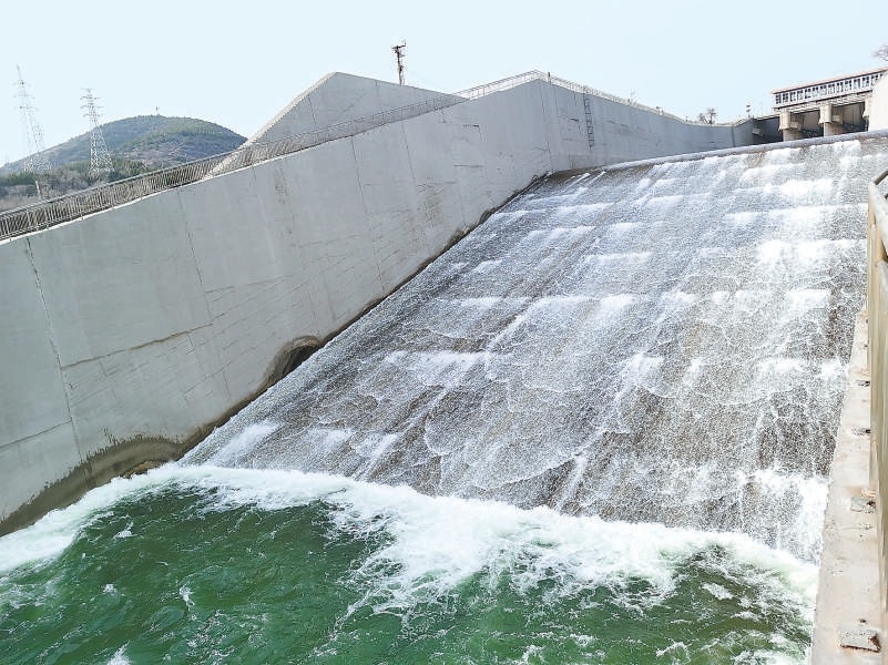 官廳水庫向下游開閘補水。 閆雪攝