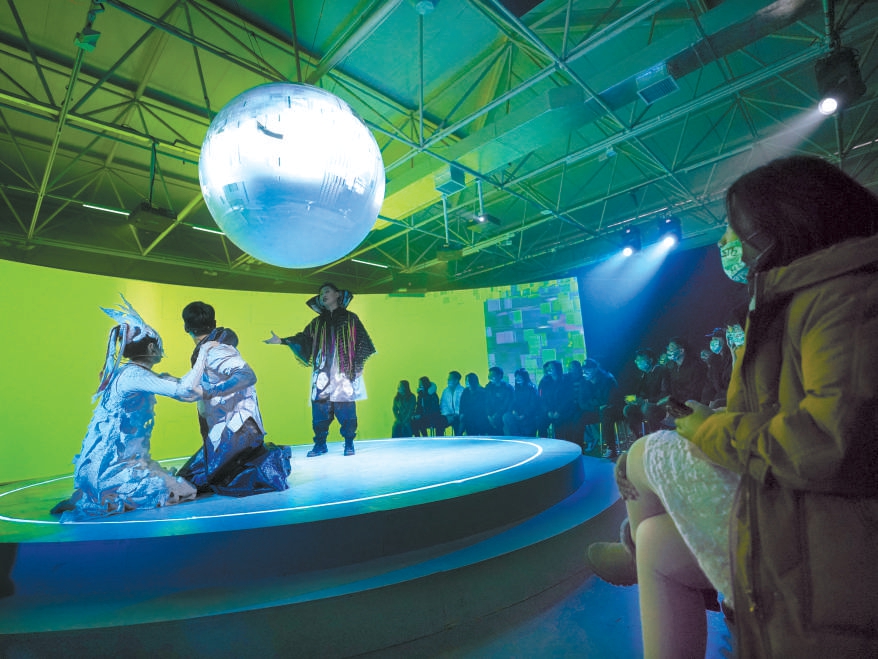 后浸沒式戲劇《畫皮2677》在繁星戲劇村全新的場(chǎng)景里上演,沒有舞臺(tái),也沒有座位,取而代之的是在“未來”和“古風(fēng)”之間穿梭變換的情境。觀眾進(jìn)入劇場(chǎng)的同時(shí)成為更具有參與感和體驗(yàn)感的“戲劇玩家”。本報(bào)記者 方非攝
